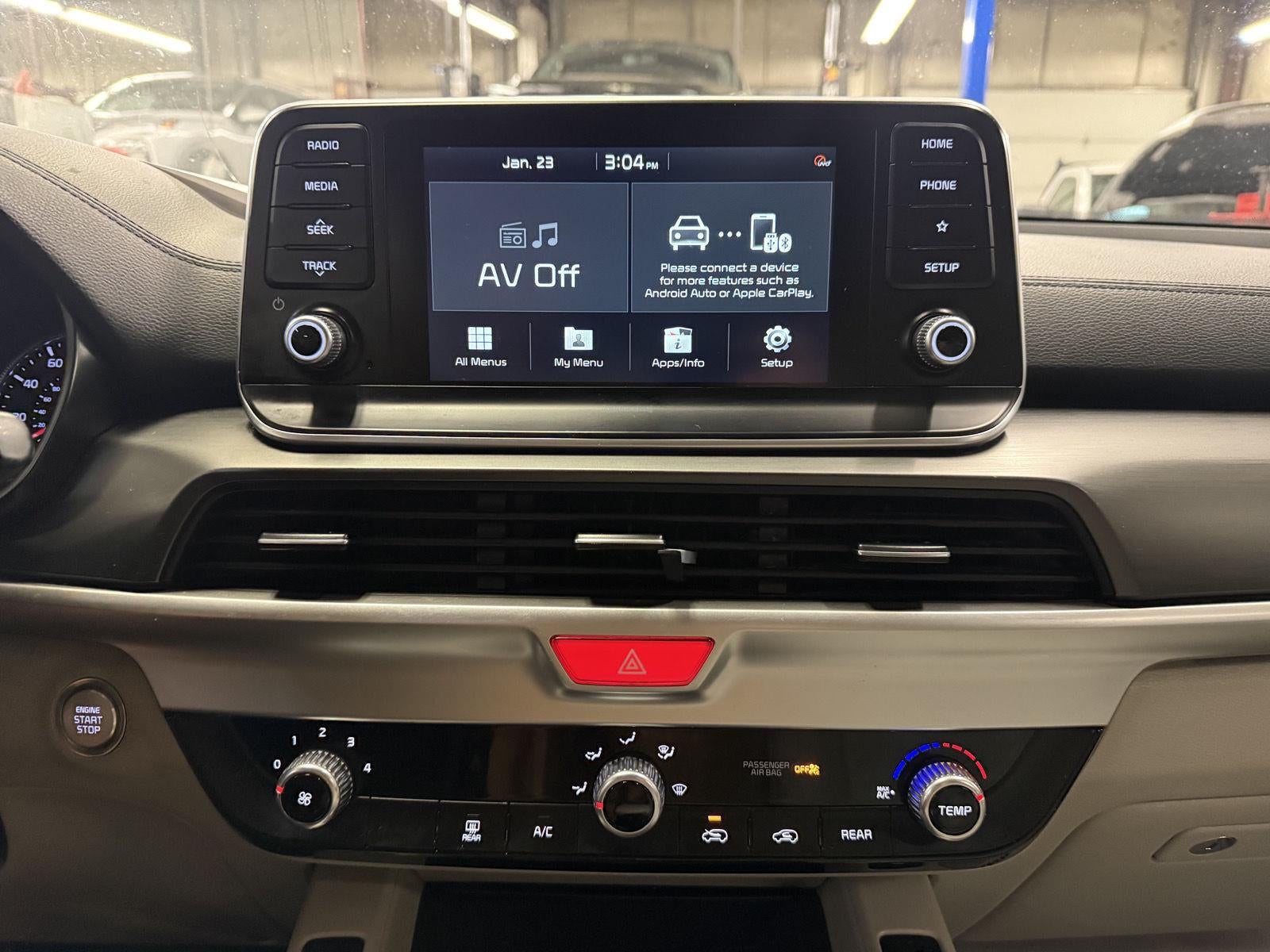 - Radio: AM/FM/MP3/SiriusXM Audio System -inc: UVO link infotainment system, w/smartphone integration for remote commands and remote vehicle status, 6-speaker, support for Android Auto and Apple CarPlay, 8" touch-screen color display, a total of 5 USB charge ports in all rows and Bluetooth® wireless connectivity w/voice recognition (a Bluetooth® enabled cell phone is required to use Bluetooth® wireless technology), Note: Remote's climate feature is not available on LX and S trim levels due to manual HVAC system