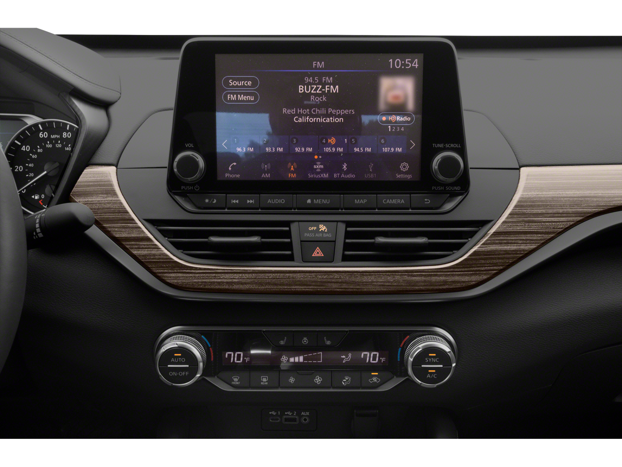 - Radio: AM/FM/HD w/Bose Premium Sound System -inc: 9 speakers, NissanConnect w/navigation and services, Nissan door to door connected navigation w/3D building graphics, satellite imagery, online POI search, online premium traffic information, SiriusXM Traffic, SiriusXM Travel Link (weather, fuel prices, movie listings, stock info, sports and parking), Radio Data System, MP3, aux-in, NissanConnect featuring Apple CarPlay, Android Auto, 8" color display w/multi-touch control, SiriusXM satellite radio w/advanced audio features, 2 front illuminated USB connection ports (1 Type-A, 1 Type-C) for iPod interface and other compatible devices, Bluetooth® hands-free phone system, streaming audio via Bluetooth®, Hands-free text messaging assistant, Siri Eyes Free/Google Assistant voice recognition and Over-the-air (OTA) updating for headunit firmware via a Wi-Fi WPA2 connection