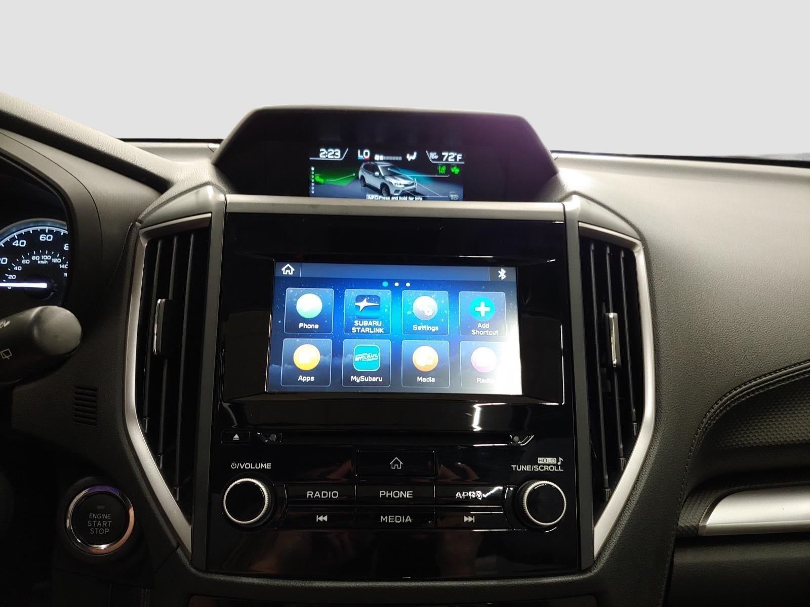 - Radio: Subaru Starlink 6.5" Multimedia Plus System -inc: AM/FM stereo HD Radio w/single-disc CD player w/MP3/WMA/CRR/RW file capability, multi-touch gesture high resolution display, voice activated controls, Bluetooth® audio streaming connectivity and hands-free phone connectivity, Bluetooth® hands-free SMS text messaging connectivity, iPod control capability, rear-vision camera display, SiriusXM All Access radio and Travel Link (4 months free trial/subscription required after), smartphone integration: AHA, Android Auto, CarPlay and Pandora, Starlink cloud applications: refer to subaru.com for app availability, steering wheel controls, 6 speakers, 3.5mm auxiliary input jack, dual USB input ports and body color roof mounted antenna
